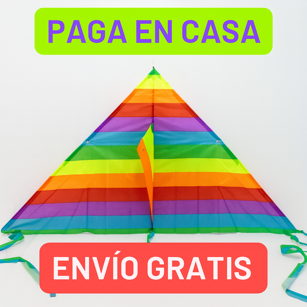 Disfruta momentos inolvidables al aire libre con esta colorida cometa de rayas, ideal para grandes espacios. Su diseño amplio de 1.2 metros de ancho garantiza estabilidad y diversión asegurada para grandes y chicos. Perfecta para volarla en familia, en el campo o en la playa.